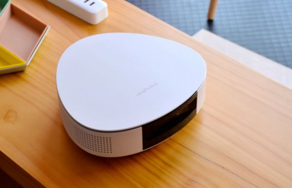 这款峰米投影仪Smart外观以黑色作为主色调,同时在机身上方有一个米黄色提手,方便携带。机体周身遍布小孔,或许是散热需要。