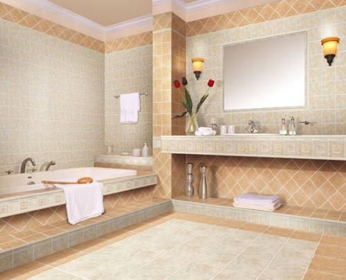 色彩的配合使用、形状的多样搭配、装饰线条的精心设计,都能给卫浴间带来不一样的风貌。在瓷砖拼贴上,采用一些多样化的方式,可使卫浴间的设计显得丰富多彩。