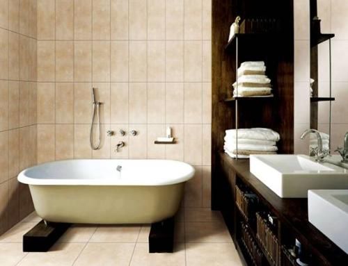 需根据自己浴室的空间大小、结构、采光度和实际需求来选择合适的瓷砖,建议墙面砖选用浅色系列,腰线以下的可选颜色重些的瓷砖。或用冷暖对比色装饰也是非常不错的选择,如蓝橘色合体,蓝色砖让人有置身海洋的梦幻感觉,橘色则给人一种温暖柔和的感觉,两种颜色并用能平衡浴室色彩,让置身卫浴间体会温暖中的一丝舒爽。
