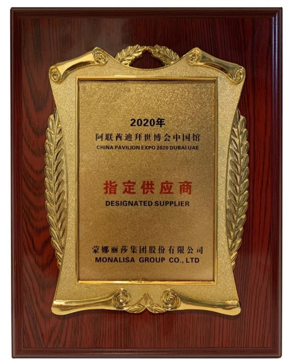 2019年7月30日,2020年迪拜世博会中国参展路演(北京站)在北京世园会园区举办。来自阿联酋驻华大使馆、科技部、中国贸促会、中国国际商会等单位和企业、媒体的代表约170人出席活动。在会上,蒙娜丽莎被授予2020年迪拜世博会中国馆指定瓷砖供应商。