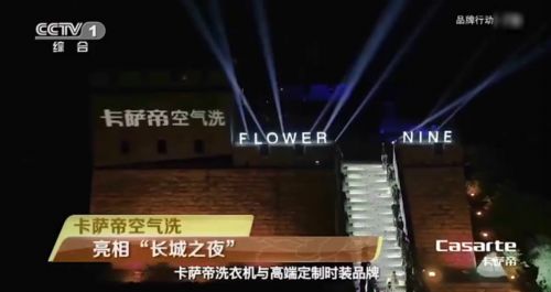 7月30日,卡萨帝洗衣机“长城之夜”T台秀登上了CCTV-1频道。此番央视以专题“卡萨帝‘空气洗’亮相‘长城之夜’”发布报道称:“卡萨帝洗衣机与高端定制时尚品牌FLOWER NINE在长城上共同举办了一场名为‘长城之夜’的高级时装发布秀,卡萨帝带来融合纤洗护理机、纤见洗衣机等多款智慧产品,展现了‘空气洗’对于高端衣物及复杂面料的极致呵护。”