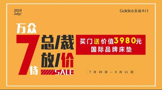 2019年7月26日-2019年8月11日,金迪木门夏日大促,线下门店进店有礼,还有买门送乳胶枕、买门送品牌床垫双重惊喜火爆来袭,引起了广大消费者火爆围观。