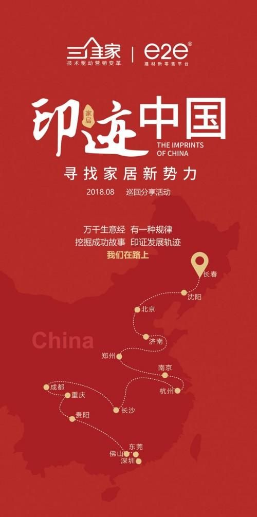 “印迹中国·寻找家居新势力”全国巡回分享会于2019年8月全面启动,跨越全国15个城市,其中包括长春、沈阳、北京、济南、郑州、西安、南京、杭州、长沙、成都、重庆、贵阳、东莞、佛山、深圳等重点家居产业城市。