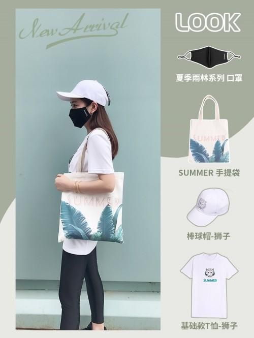 本季喜梦宝家居推出全套夏季防晒生活品,以上四款单品均有在售。【棒球帽-狮子】采用加宽帽檐设计,搭配冰丝面料【夏季雨林系列 口罩】可以更好的达到防晒效果。SUMMER 手提袋-RMB:49,原创图案搭配高清数码印花,色牢度高,可反复水洗,不褪色。