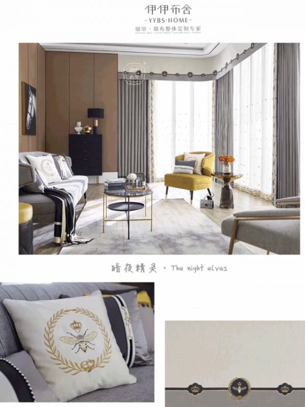 在伊伊布舍的门店里,无论是窗帘、墙布、护墙板,还是挂画、台灯、装饰品,每一款你看中的产品,都可以直接买下。伊伊布舍是目前整个家纺行业里,整体软装最为完善、品类最为齐全的品牌。