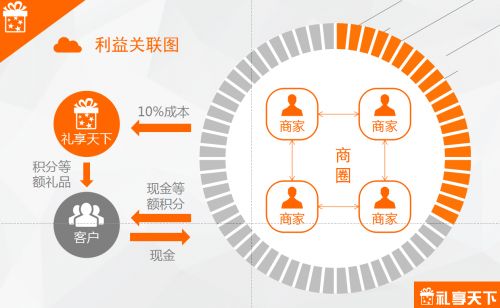 以打造商圈联盟为核心,打通单位商业区域内实体企业之间的交流通道。通过网络积分商城模式,将同个商圈内不同业态的企业联系企业,实现不同商家之间的客户共享,强化利益关系,形成强有力的竞争壁垒。
