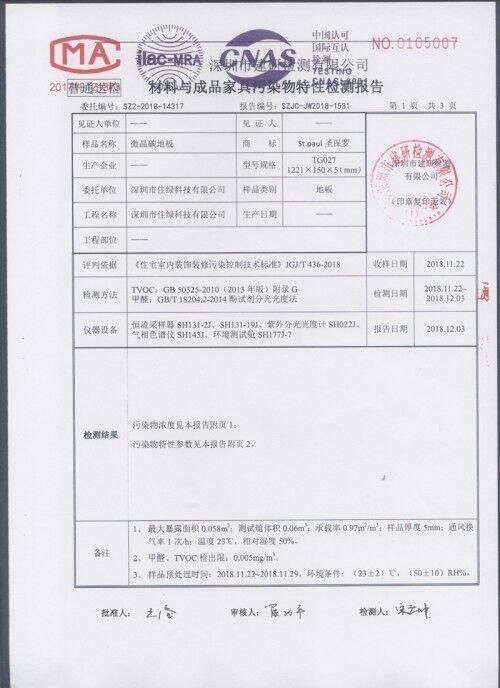 圣保罗微晶碳地板检测报告(企业供图、侵删)