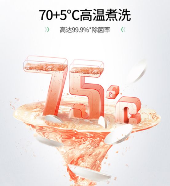 从洗涤方面来讲,华帝无残水洗碗机V6采取双面龙卷洗技术。加长双层喷臂上下环绕全覆盖式六面喷淋,碗底、碗背等缝隙也能无死角强力冲刷。该产品采用75摄氏度高温煮洗方式,我们手洗能接受的温度一般在40℃左右,而猪牛等动物性油脂溶解的温度在40℃-50℃,这是手工不能直接接触的,然而在这种高温下油脂是很容易溶解的。同时在75摄氏度高温下,即使是大肠杆菌、葡萄球菌等顽固性细菌也能统统消灭,除菌率高达99.99%。