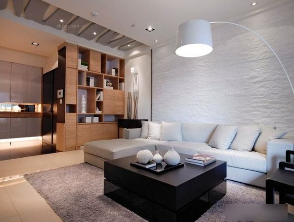 现代简约风格在处理空间方面一般强调室内空间宽敞、内外通透,在空间平面设计中追求不受承重墙限制的自由。墙面、地面、顶棚以及家具陈设乃至灯具器皿等均以简洁的造型、纯洁的质地、精细的工艺为其特征。并且尽可能不用装饰和取消多余的东西,强调形式应更多地服务于功能。