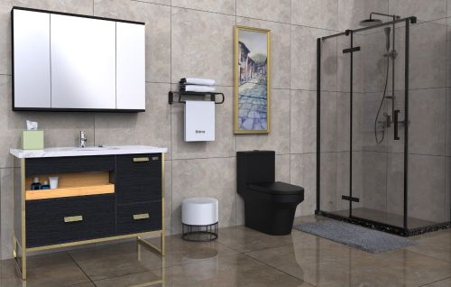 航标卫浴新品开发紧跟市场需求,此次在国庆销售大节点到来之前,将给终端市场销售一系列强劲竞争力的产品。着重推出当下年轻人偏爱的哑黑色系轻奢套间,主打轻奢浴室柜及哑黑坐便器两大产品。