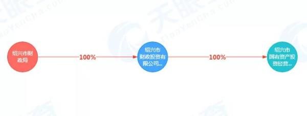 通过天眼查进行股权穿透可以看出,绍兴市国有资产投资经营有限公司,是绍兴市财政局通过绍兴市财政投资有限公司全资持有的孙公司。