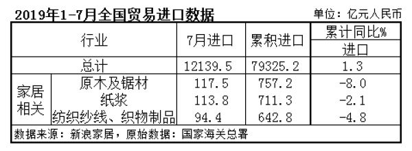 海关总署:1-7月,家具出口2100亿元,同比增长8.8%