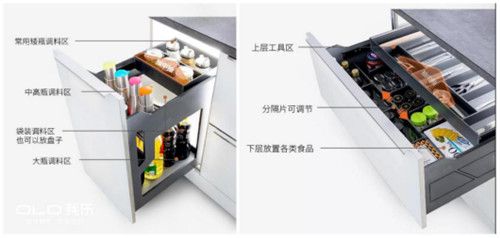 当然,要想厨房井井有条,合理实用的收纳系统必不可少,我乐橱柜在这一方面,始终坚持2大原则,轻松实现了对厨房收纳空间进行科学划分和利用的目的,给广大用户提供了一个完美参考。