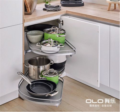 待划分好区域后,我乐还会对各区域充分利用,绝不放过任何角落。比如,我乐设计的多功能调味篮、工具抽和飞碟拉篮等产品,极大地满足了现代厨房存取各式锅具碗碟的需求,让用户可以尽享烹饪的快乐。