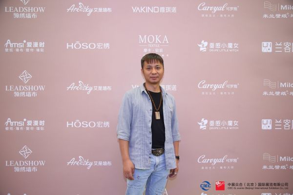 【新浪记者】:各位网友大家好,我是新浪家居墙布频道记者黄玉,现在我位于第28届上海展会绣魁精品展区的现场,非常荣幸邀请到领绣设计总监周兴瑜先生接受我们的采访。周总您好,领绣此次展会主要做了哪些方面的产品展示?