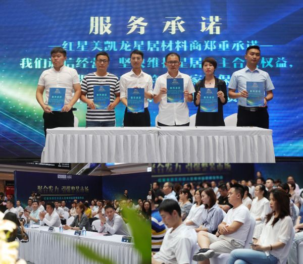现阶段,环保装修一直是行业的焦点话题。在活动现场,红星美凯龙携手TATA木门、老板电器、友邦吊顶、九牧卫浴、东鹏瓷砖、智谛橱柜等红星美凯龙·星居战略合作伙伴共同发布服务承诺,为消费者带去更健康的环保装修材料。