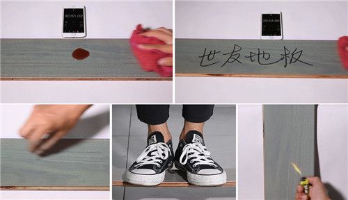 在耐污测试、耐磨测试、耐高温测试及承重测试四项测试中,世友的这款地板均表现出色,虽然表面做了拉丝工艺处理,但污渍仍能轻易擦去。同时其复合结构具有较强的稳定性,在重物的压力下会有一定弧度的弯曲,但在重物消失时能快速恢复原来的形状,这能在日常家居环境中展现出不错的表现。