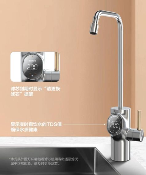 D600的水龙头就非常人性化地自带智能显示屏,不仅能实时看到出水的TDS值,滤芯到期时还会显示“请更换滤芯”字样,随着滤芯的使用,外圈灯环逐渐熄灭,提示主人提前购买滤芯,避免到期了没法及时安装替换芯的情况。让你每天都喝得放心。