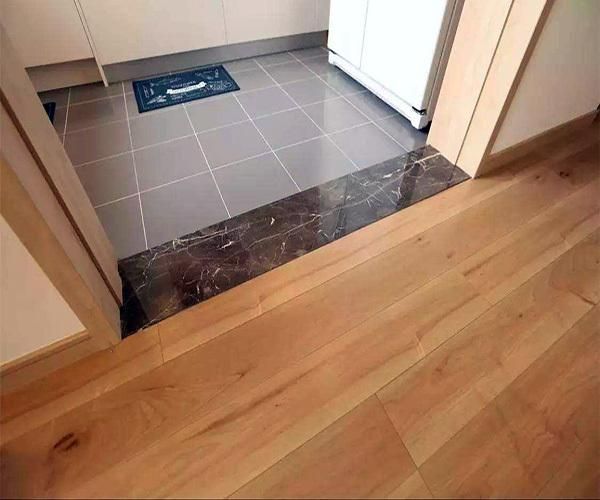 瓷砖和地板安装一般不是同时进行的,所以在时间差距上可能会导致铺完后造成两边高度不一致的情况,这时候就可以用门槛石来解决,但要注意这种情况下采用门槛石,靠近地面较低的一边,需要“倒角”,可以是斜角可以是圆角。