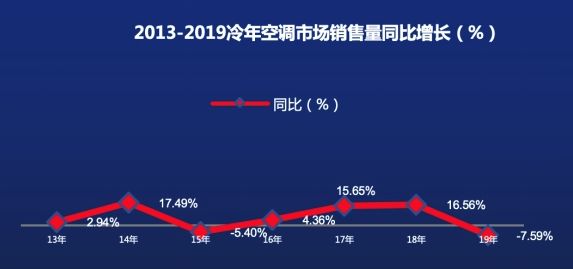 据国家信息中心发布最新报告显示:2019冷年,国内零售市场规模实现6056万台,销量同比回落7.59%,销售额同比下降9.95%,空调市场在连续增长三年的情况下首次遭遇下滑,空调行业库存量也从2014年以来的4000万套上升至5000万套。楼市低迷、中低端产品严重同质化、增量基础不稳、市场价格竞争等是促成这一结果的主要因素。
