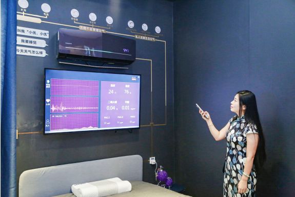 日前,为了解决睡眠环境问题,海尔空调发布了智慧卧室场景,从卧室空气质量、温度、湿度、洁净度、光线等全方位,提供智慧、健康、舒适的睡眠环境。通过“以用户为中心”的场景创新,海尔打造了一系列“生活连接“的使用体验:对着智能音箱说“小优小优,我要睡觉了。”空调就会自动调至睡眠模式,同时关闭主灯、窗帘,打开床头灯和香薰机,创造一个舒适温馨的睡眠环境;利用智能枕头自动检测人体睡眠数据状况,联动空调、净化器、新风机等空气设备自动调整运行模式;自动检测室内CO₂、PM2.5、TVOC等数据,并主动开启新风、净化等功能,保证室内空气新鲜和健康,进而提高人们的睡眠质量。