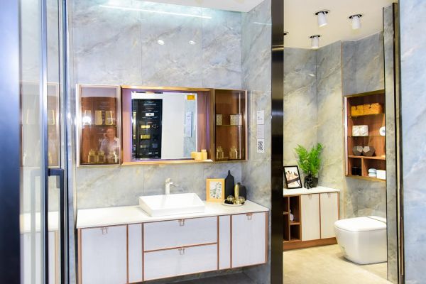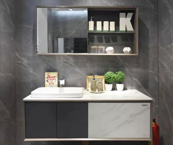 此次展会中,还特别展出了两款最新浴室柜产品,年轻化极简设计,采用岩板等新型材料、工艺。该新品,将有可能在下月欧派卫浴定制节期间于各大门店正式推出。
