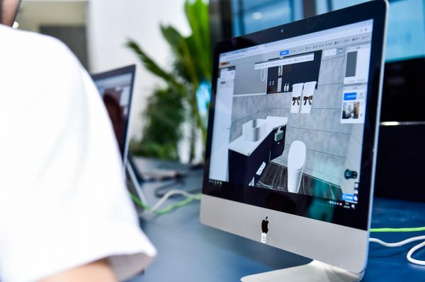 除产品之外,服务流程也是今年的重点展示对象。欧派卫浴展馆设计交互区,动画视频、门板自动换色演示等方式,充分解读与展示了欧派定制设计的魅力。经销商可通过欧派MTDS全流程智能管控系统,在引流邀约、线上派单、设计测量、签订合同、成交下单和运营统筹上实现6步轻松管理。