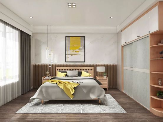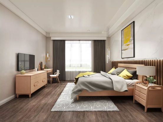 北欧自然风的精髓在于多一分显得繁琐,少一分显得寡淡。主卧灰色、白色与原木的搭配,更有利于营造安静舒适的睡眠环境。
