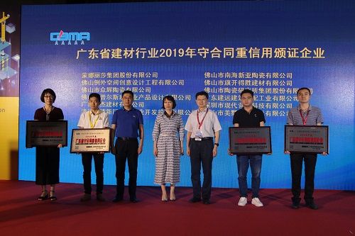 会议期间,还对2018年度广东省“守合同重信用”企业代表进行了颁牌仪式,并通过“守合同重信用”公示活动的宣传,推动全省建材行业各个领域营造诚信兴商的浓厚氛围,倡导企业强化诚信自律,培育诚信文化,携手共建和优化营商环境,共同推动广东建材行业健康发展。