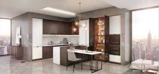 就拿我乐“君悦”系列橱柜的设计来看,利用雅白高光门板与深灰柜体行成强烈色彩反差,让空间立体感倍增,再采用高光UV嵌金属条与大理石纹背景墙上精致的玉石纹形成完美搭配,高端大气感浑然天成,深受职场精英人士的喜爱。
