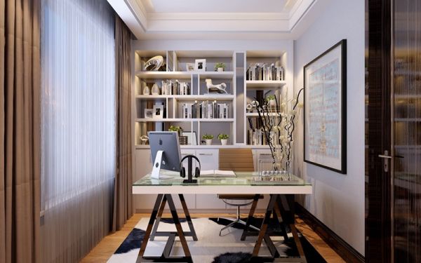 由于工作岗位的特殊性,男主会经常用到书房办公,女主担心久坐伤腰,还和我们一起选了一把符合人体工学的办公椅,可以让男主坐起来更舒适。书房的储物同样是空间硬需,设置一整面的书柜即可很好地解决这一需要。