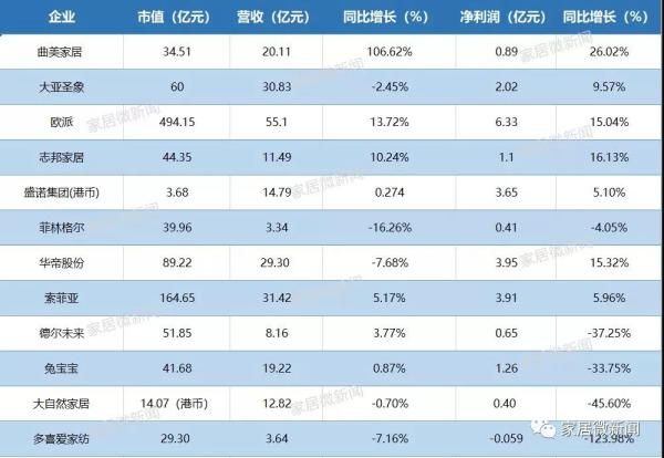 13家上市家居企业财报新鲜出炉,5家净利润同比下滑?