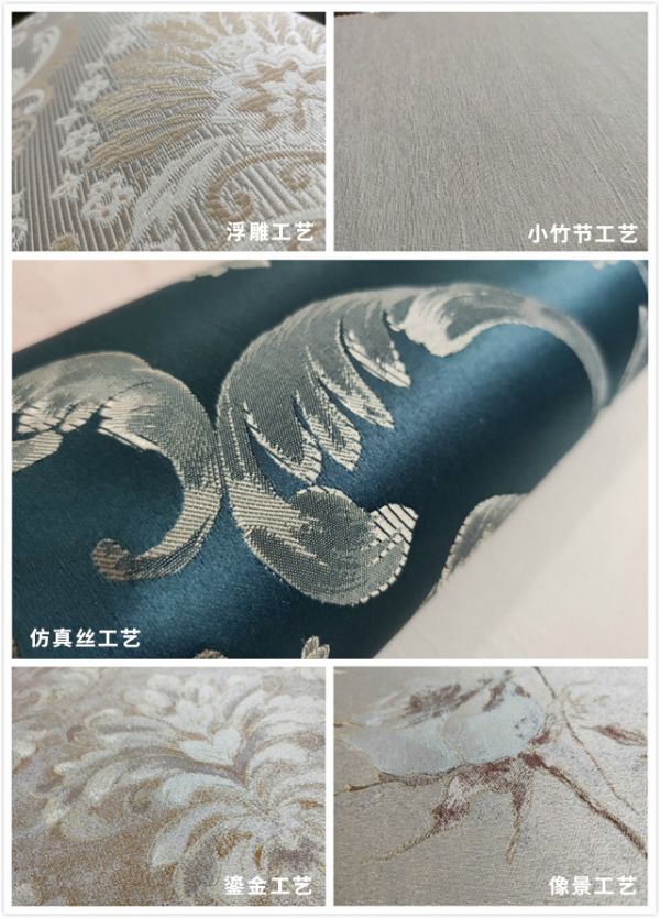 鎏金工艺织成的墙布金丝穿梭,流光溢彩,高贵不凡;仿真丝工艺,低调奢华,墙布如丝般的柔滑,多彩而优雅;崇尚返璞归真的小竹节工艺,自得一片宁静,增添墙布肌理感,回归自然之美;汇明A+墙布创新提花“金丝绣”织造工艺,以提花的方式表现刺绣,在细节中绽放璀璨光芒。