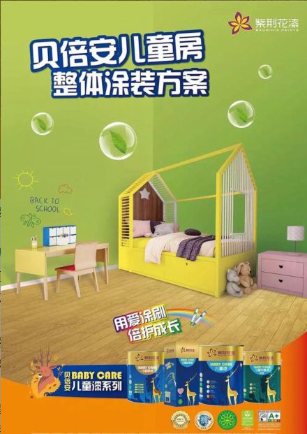 紫荆花漆认为:一款真正的环保儿童漆,需要具备高效净化空气的功能。2018年,紫荆花涂料集团研发推出了专为儿童研制的“贝倍安”儿童漆系列产品,让消费者在安全健康的家中,陪伴孩子快乐成长。