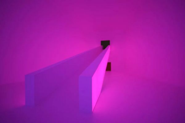 沃尔夫斯堡艺术博物馆安装了一个由两个房间组成的“巨大”步入式灯具,墙壁和天花板采用德爱威材料制成多层结构。进入这样的房间,人们会生出一种从实体空间中抽离而出的缥缈感,已无法再去感受三维立体的空间感。没有重量、没有触感的光瓦解了空间,一切都被扁平化了,成为无限延伸的一片色域。每一步都能让人感受到自己成为光影世界中的一部分。