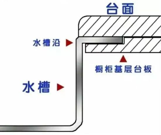 台上盆:这是最简单方便的安装方式,台面开孔,孔比水槽尺寸略小,然后把水槽搁置在台面上,四周打一圈玻璃胶。这种方法承重力好,但清理起来麻烦,后期玻璃胶还会发霉发黑。