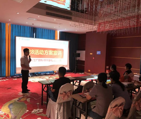 本次启动会由莫干山地板安徽省区经理章健康主持,对928活动方案进行详细的宣讲,本次淮南站联动是一次全国性的品牌联动,由工厂直接操盘放价,多款优质产品皆是工厂直供价格,更有现场抽取豪华家电环节,钜惠福利,惊喜不断。章经理指出,活动已在多地举办,皆取得喜人的效果,在座的各位务必熟悉方案内容,提高信心让活动方案真正落地,使消费者真正享受到优惠。