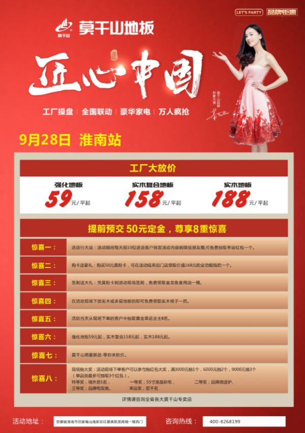 淮南站启动会圆满结束,每个莫干山人都情绪高涨,蓄势待发,以必胜的姿态和昂扬的斗志,携手同心,9月28日,势必会带来一场钜惠盛宴,让每一位消费者都能享受优质的产品、舒心的服务和霸气的折扣。