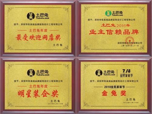 佳美域于2013年加入中国最大的互联网家装平台土巴兔,多年多次荣获土巴兔平台优秀企业的称号。也始终坚守平台客户第一、诚信等企业文化价值观。