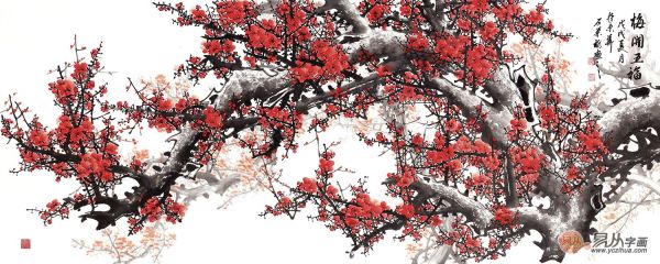 石荣禄八尺横幅梅花图《梅开五福》