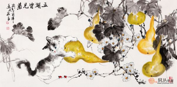葫芦,爱生长、能蔓延、多果实,于是人们赋予它丰富的文化内涵。因此葫芦也成为了大家心目中增寿、降瑞、除邪、保福的吉祥物。不仅普通百姓喜欢葫芦,画家们也偏爱它,画葫芦就是画如意、画平安。葫芦是非常适宜表现意趣的题材,不仅长得恣肆烂漫,还寓意美好,所以葫芦题材虽传统,但也足以表现个人意趣。