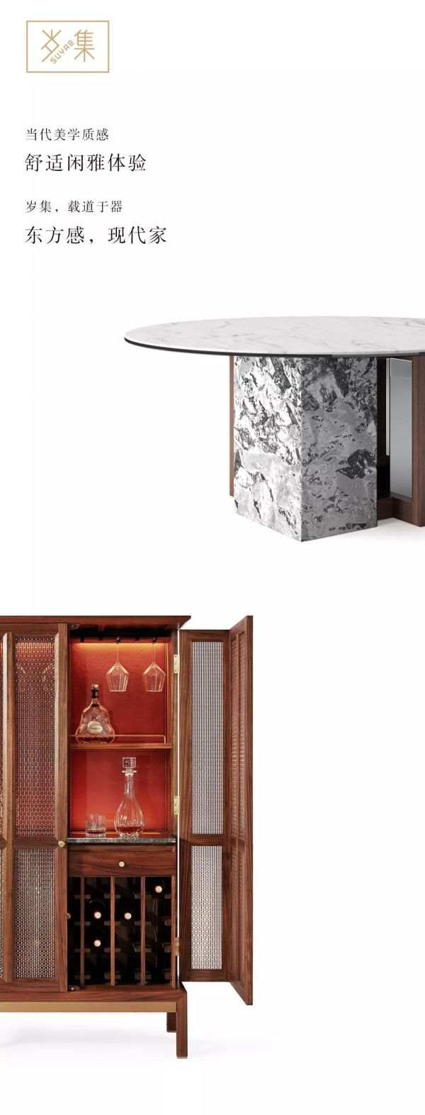 岁集家具以东方气质为基调,让东方式的隽永文雅与当代生活的简约时尚共融相生,涵容传统气韵的设色选择与质地高乘的材质组合,共同勾勒生活的美学质感。