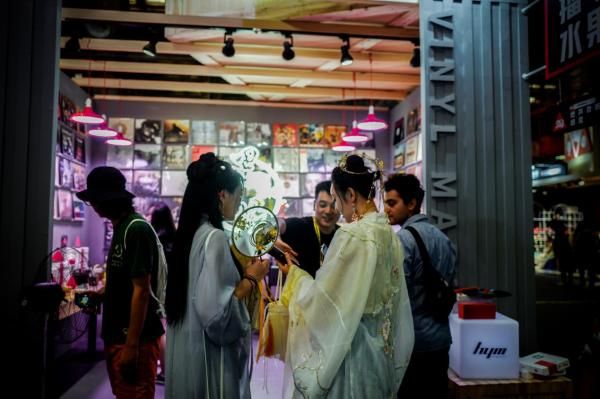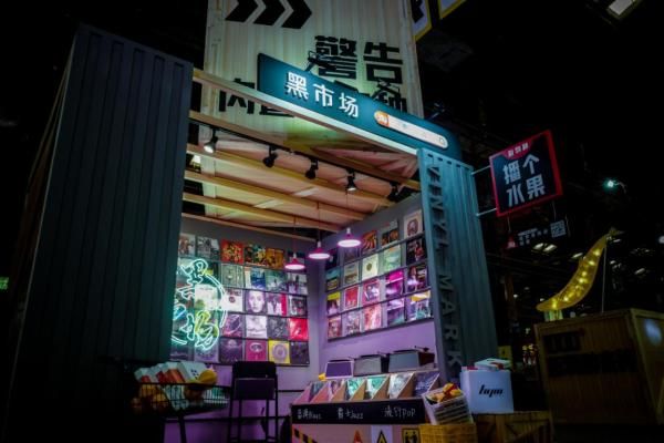 嘿哟音乐将黑胶文化带入日常,选择最能代表生活的”农贸市场”型态作为象征,打造出“黑胶+市场”概念。“黑市场”概念以国潮风格呈现,加入港式霓虹灯、菜市场标配“猪肉档吊灯”及菜篮购物车等元素,成为现场装置中一道视觉冲击的风景线,已然吸引众多KOL博主及时尚人士纷纷拍照打卡。