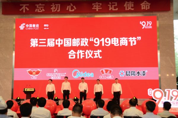 “919电商节”是中国邮政打造的电子商务品牌,是中国邮政发挥信息流、资金流、实物流“三流合一”的综合服务平台优势打造的电商平台,更是中国邮政推动农村电商高质量发展,服务乡村振兴战略和精准脱贫攻坚战的重要行动。结合本届“919电商节”,中国邮政将积极构建名优工业品下乡和绿色农产品进城的双向流通渠道,全面服务农村市场消费升级,助力精准脱贫,彰显中国邮政作为央企的责任担当。中国邮政集团公司党组书记、董事长刘爱力,总经理张金良,副总经理康宁出席启动仪式。