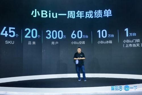 苏宁智能终端公司总裁刘东晧首先回顾了小Biu过去的一周年。自小Biu音箱诞生,仅仅一年时间,苏宁小Biu全系产品已拥有45个SKU,20大品类,300万核心用户,完成了智能家居场景的全面覆盖。其中,小Biu有多款产品爆红全网,凭借极致体验、极致价格和极致服务大规模圈粉。如创下6个月售出60万台销量的小Biu空调,首发1小时销量突破一万台、好评率100%的小Biu智能门锁等。产品也屡获德国红点设计大奖、中家院“好产品”认证、“嘉电”认证等行业殊荣,在业内和用户心目中形成了“高配平价”的良好印象。