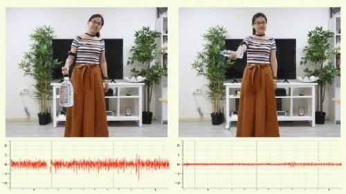 将肌电信号发射器佩戴在消费者的主力手上,通过电脑中可以实时查看肌电实时波动图,大家可以直接看出哪种吸尘器用户使用舒适度更高。从图中可以看出,用户施力越大,肌电图的波动就越大。(肌电波动越小,用户相对肌肉用力更小,也更为轻松)