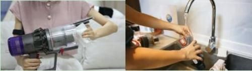 在清洁结束后,往往需要把吸尘器的尘杯清理干净。在倒灰方式上,英国某品牌的手持式吸尘器无法将尘杯拆卸,也不能水洗,时间久了以后容易积累污垢和细菌。而莱克魔洁立式/手持无线吸尘器可以将2个尘杯拆卸后放入水中清洗。