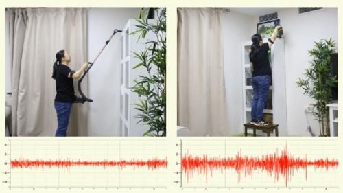 地毯清洁也是日常清洁的一部分,使用立式/手持吸尘器的用户,肌电图波动变化不算大,而使用手持吸尘器的用户在清洁地毯时,肌肉图波动出现了集中很明显的波动。不难推测出,使用手持式吸尘器所花费的力气更大。