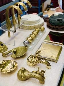 到了打磨的环节,很多人问手工打磨的优势究竟是什么?解说人员并不作答,而是让访客们亲眼看到了打磨前后的对比陈列后,超高的工艺,令黄铜散发出熠熠生辉的魅力。在线条和装饰丰富的产品上,人工操作更能根据细节的不同打磨到位。
