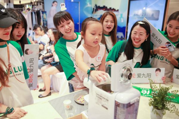现场除了有科技感满满的新品,还有十分有趣的活动,数十位粉丝一起参与了新品的体验环节。体验环节中,现场粉丝分为了四组,分别根据爱好为邓伦制作了一杯深圳定制豆浆。经过现场几位评委的投票,由粉丝制作的“芯薯于藜”料包获得优胜,他们制作出的配方也成为了深圳专属的九阳定制版豆料包。